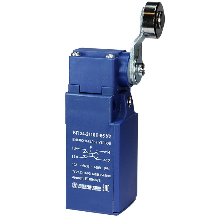 ВП 24-2116П-65 У2 (XCKN2116),рычаг со стальн.роликом,1з+1р,мгновенный,20 мм,б/сальника,3А,IP65 (ЭТ)