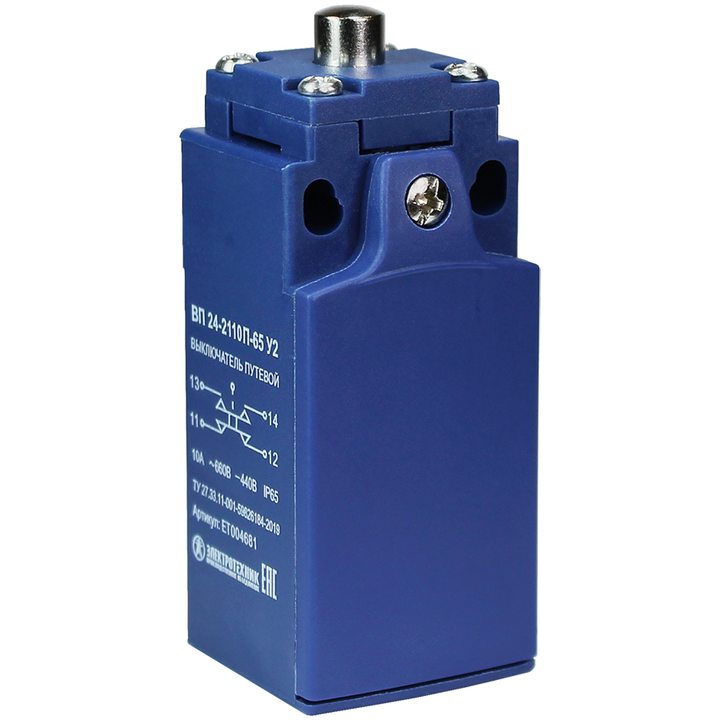 ВП 24-2110П-65 У2 (XCKN2110), толкатель, 1з+1р, мгновенный, 20 мм, без сальника, 3А, IP65 (ЭТ)