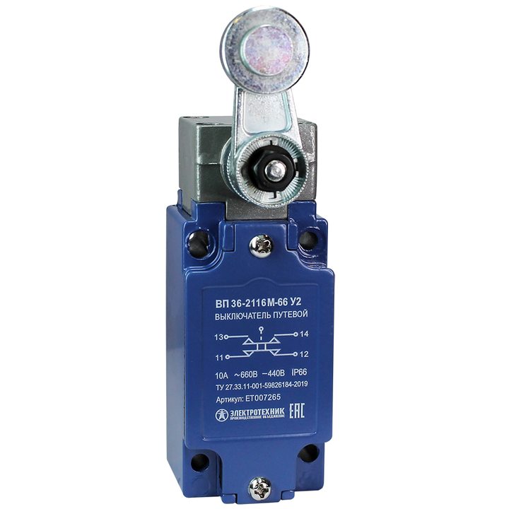 ВП 36-2116М-66 У2 (XCKJ10513H29),рычаг стальн.ролик,1з+1р,мгнов.,30х60мм,б/сальника,3А,IP66 (ЭТ)
