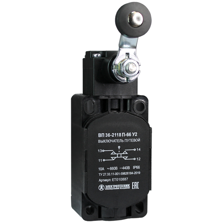 ВП 36-2118П-66 У2 (XCKS131H29),рычаг пластик.ролик,1з+1р,мгновенный,30х60,б/сальника,3А,IP66 (ЭТ)