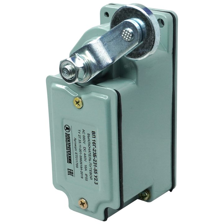 Выключатели путевые серии ВП 16 предназначены для коммутации электрических цепей управления в системах автоматики и механизированных установках при воздействии на исполнительный элемент механизма перемещающихся частей оборудования. Они обеспечивают фиксацию крайних положений и промежуточных точек траектории движения механизмов на номинальное напряжение до 660 В переменного тока частотой 50/60 Гц и до 440 В постоянного тока.