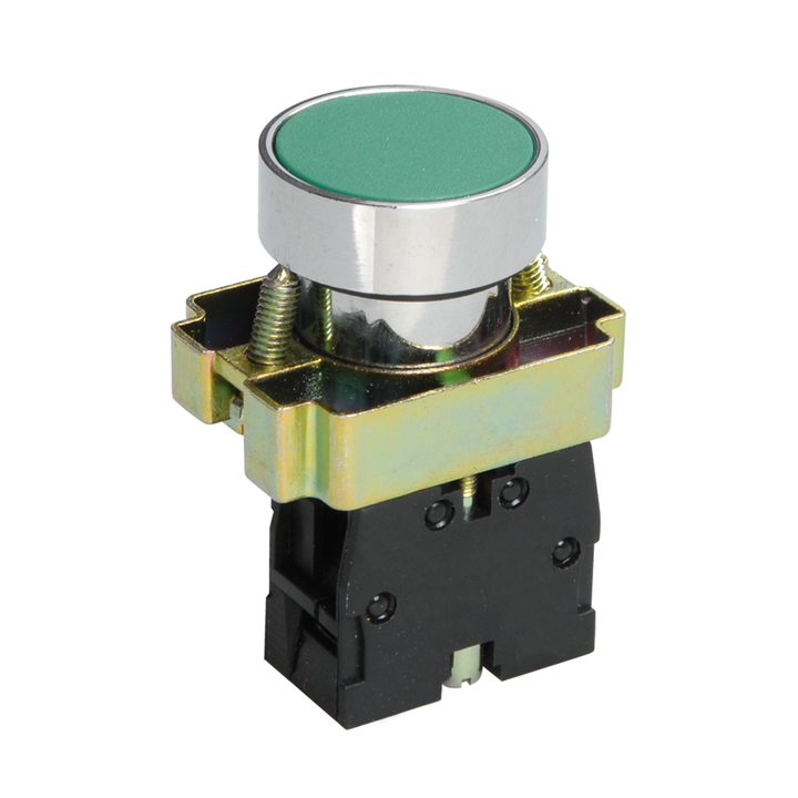 LAY5-BA31, зелёный, 1НО, цилиндр, хром, без подсветки, d22мм (ЭТ)