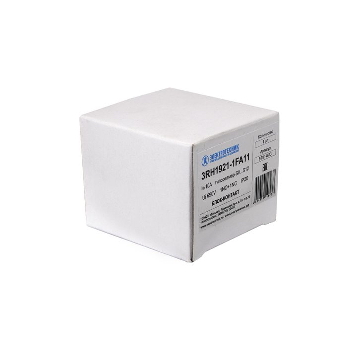 3RH1921-1FA11, 1НО+1НЗ, для контакторов типоразмеров S0…S12, фронтальный, винтовые клеммы, IP20, блок-контакт (ЭТ)