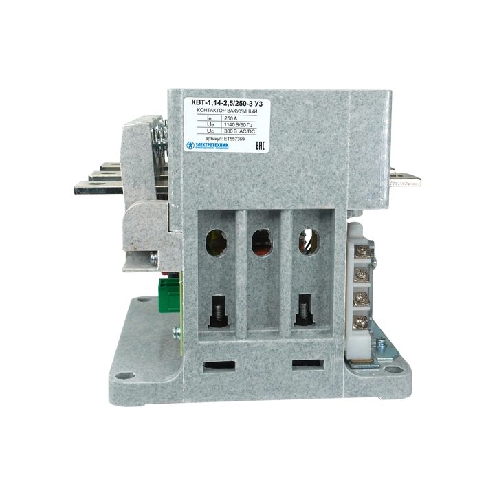 КВТ-1,14-2,5/250-3 У3, трёхполюсный, 250А, 380В AC/DC, 4з+3р, нереверсивный, без реле, IP00, контактор вакуумный (ЭТ)