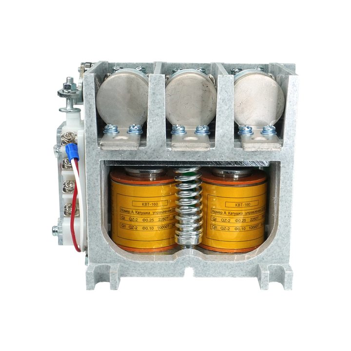 Контакторы вакуумные серии КВТ открытого исполнения с естественны воздушным охлаждением, встраиваемые в комплектные устройства, предназначены для использования в пускателях, станциях управления, для коммутации токов включения и отключения асинхронных электродвигателей с короткозамкнутым ротором и других приёмников электроэнергии в системах дистанционного управления электроприводами с тяжёлым режимом работы в цепи переменного тока 50-60 Гц, напряжением до 1140 В. Благодаря высокой электрической прочности вакуумного промежутка и отсутствию среды, поддерживающей горение дуги, электрическая дуга распадается и гаснет. * Высокий коммутационный и энергетический ресурс; * Высокая кратковременная нагрузочная способность для тяжелых пусков; * Отсутствие открытой электрической дуги и продуктов горения, * Высокое быстродействие; * Максимальная пожаро- и взрывобезопасность; * Низкий уровень шумов во время эксплуатации.