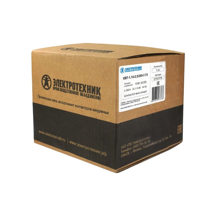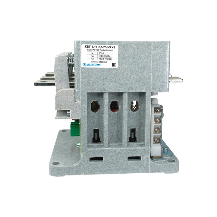 КВТ-1,14-2,5/250-3 У3, трёхполюсный, 250А, 110В AC/DC, 4з+3р, нереверсивный, без реле, IP00, контактор вакуумный (ЭТ)
