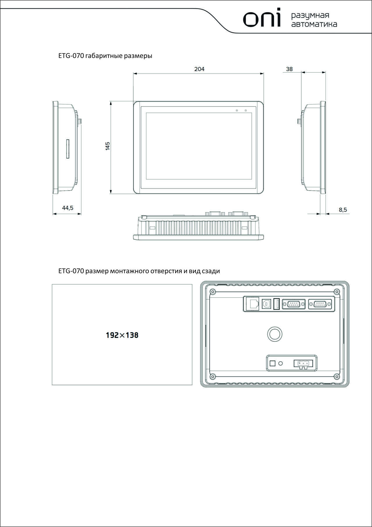 Панель оператора ETG 7дюйм ONI