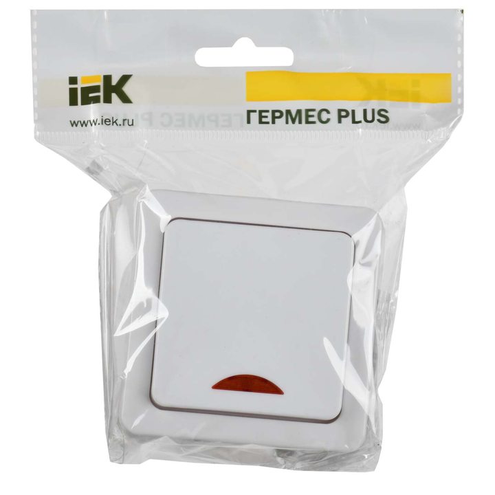 Выключатель 1-кл. ОП Гермес Plus 10А IP54 ВС20-1-1-ГПБ с индикацией цвет клавиши: бел. бел. IEK EVMP11-K01-10-54-EC