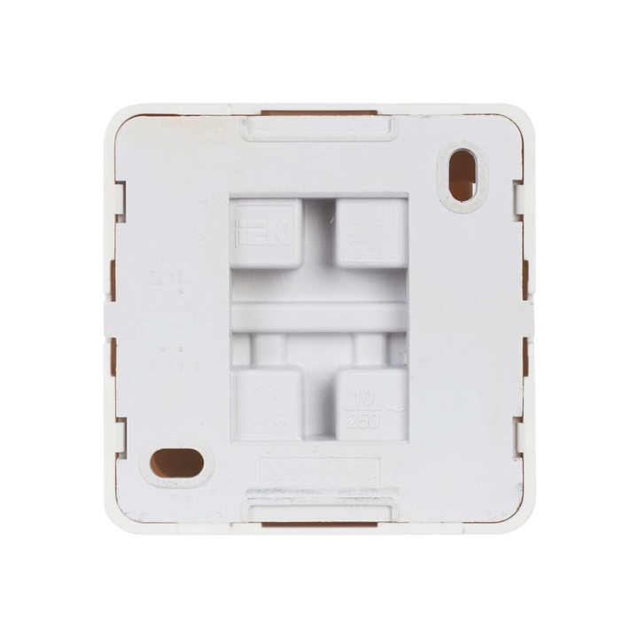 - Удобный монтаж кабеля через выштампованные вводы для проводников на основании корпуса розеток и выключателей.