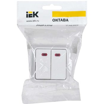 Выключатель 2-кл. ОП Октава 10А IP20 ВС20-2-1-ОБ с индикацией бел. IEK EVO21-K01-10-DC