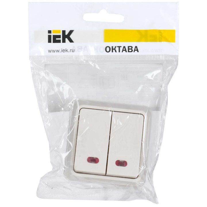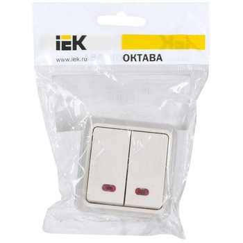 Выключатель 2-кл. ОП Октава 10А IP20 ВС20-2-1-ОКм с индикацией крем. IEK EVO21-K33-10-DC