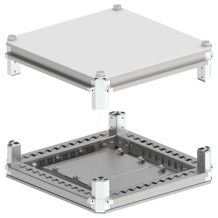 - При снятии нижней панели-основания с заглушками возможно получить кабельный ввод размером по периметру шкафа.
