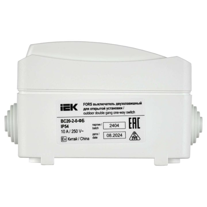 FORS Выключатель 2-клавишный для открытой установки 10А IP54 ВС20-2-0-ФБ белый IEK