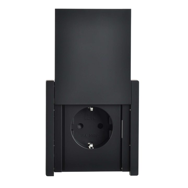FORTE&PIANO Розетка 1-местная с заземлением с защитными шторками и крышкой безвинтовое крепление 16А IP44 FP119 черный IEK