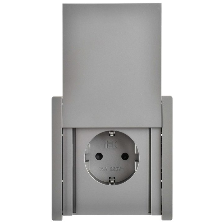 FORTE&PIANO Розетка 1-местная с заземлением с защитными шторками и крышкой винтовое крепление 16А IP44 FP521 сталь IEK