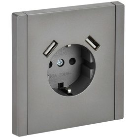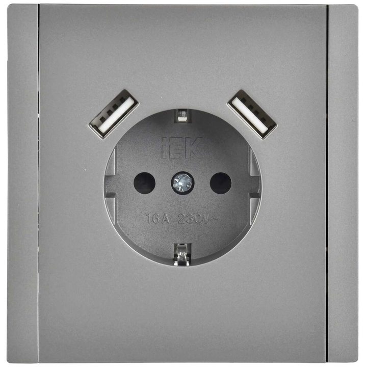 FORTE&PIANO Розетка 1-местная с заземлением с защитными шторками винтовое крепление 16А USB A+A 3,1А FP545 сталь IEK