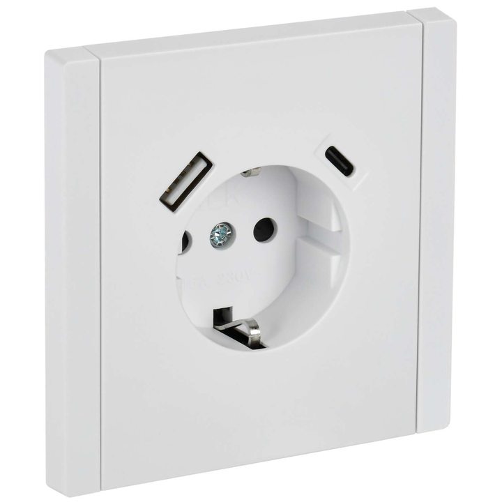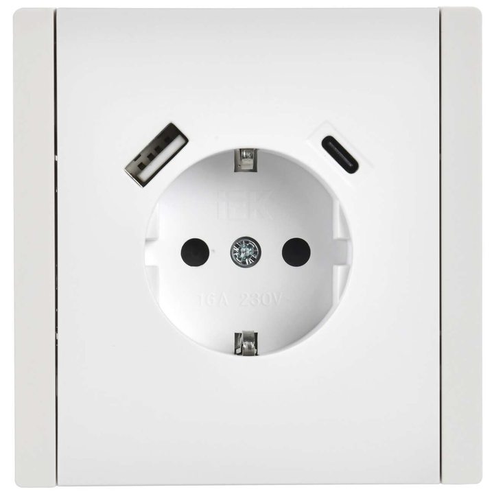 FORTE&PIANO Розетка 1-местная с заземлением с защитными шторками винтовое крепление 16А USB A+C 18Вт FP247 белый IEK
