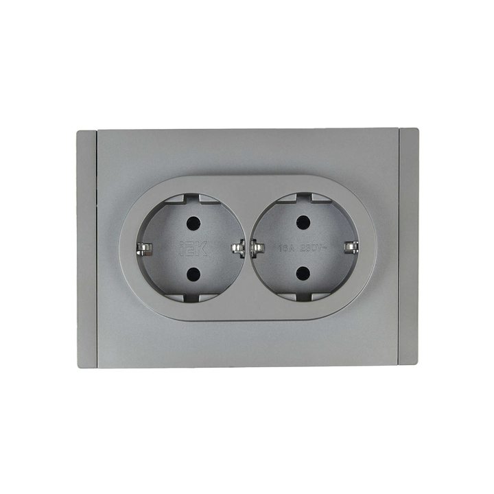 FORTE&PIANO Розетка 2-местная с заземлением без защитных шторок безвинтовое крепление 16А FP524 сталь IEK