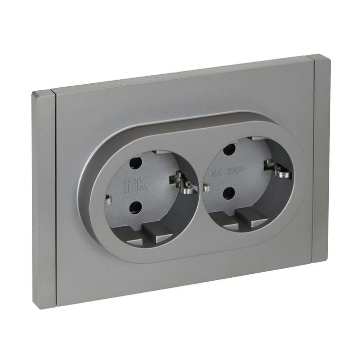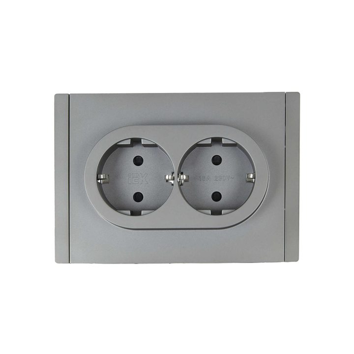 FORTE&PIANO Розетка 2-местная с заземлением с защитными шторками безвинтовое крепление 16А FP523 сталь IEK