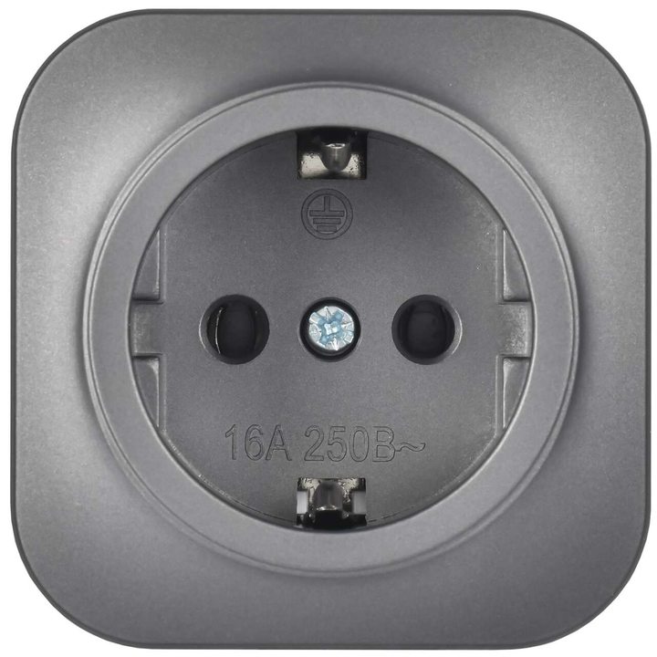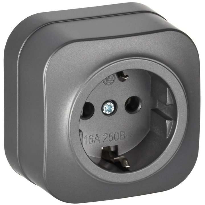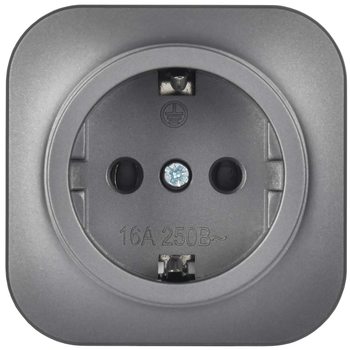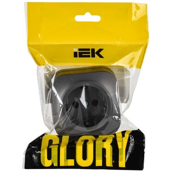 GLORY Розетка 1-местная для открытой установки с заземлением без защитных шторок 16А РС20-3-ХСм сталь матовый IEK