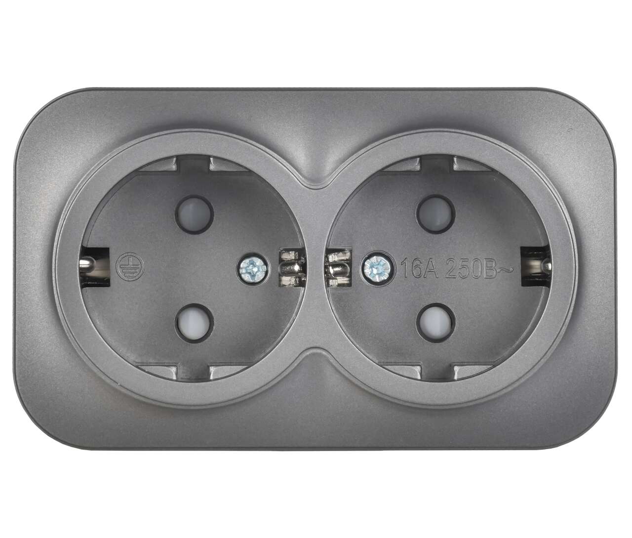 GLORY Розетка 2-местная для открытой установки с заземлением с защитными шторками 16А РСш22-3-ХСм сталь матовый IEK