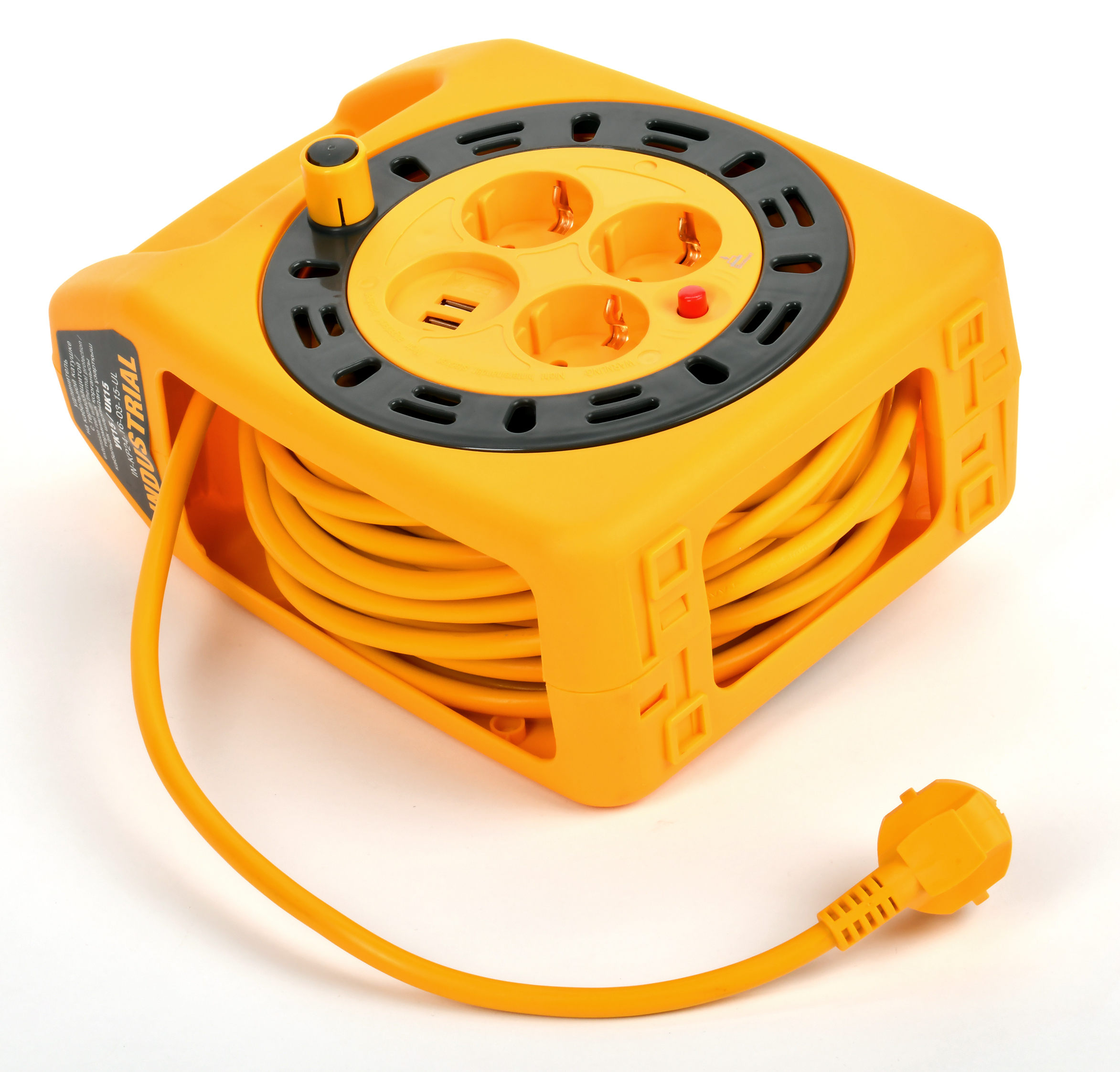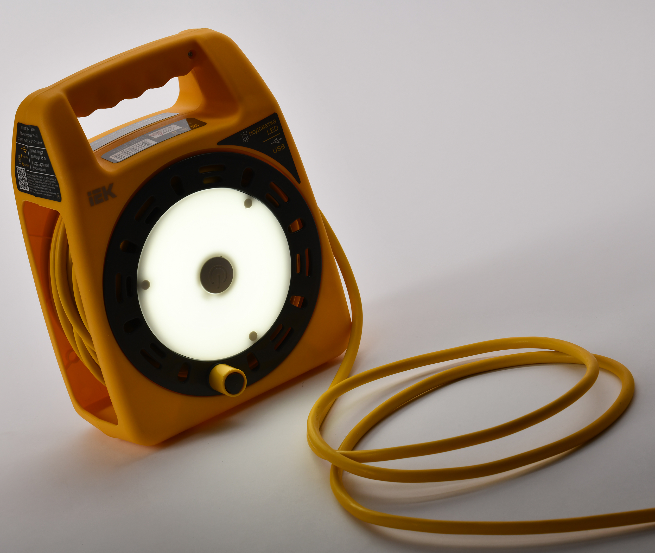 INDUSTRIAL Катушка УК15 3 места с заземлением с термозащитой 3х1,5мм2 с USBх2 с LED-подсветкой 15м IEK
