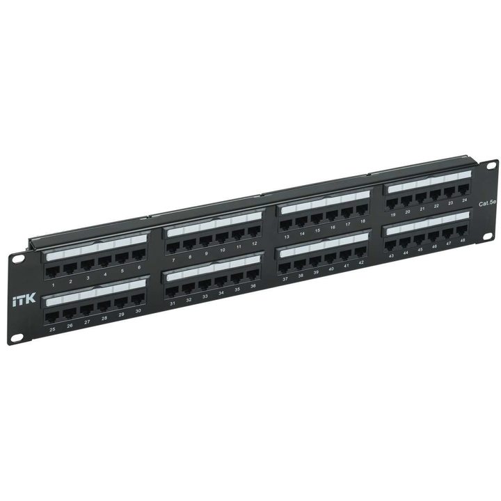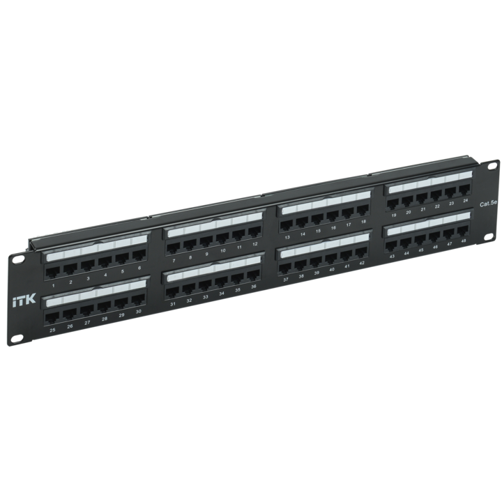 В зависимости от способа крепления, масштабности кабельной системы, типа сети ITK изготавливает патч-панели для настенного монтажа или монтажа в 19-дюймовый конструктив, по количеству портов: 12-, 24-, 25-, 48-, 50-, категорий: 3 (телефонные), 5E, 6, 6A, в экранированном исполнении и без защитного экрана.