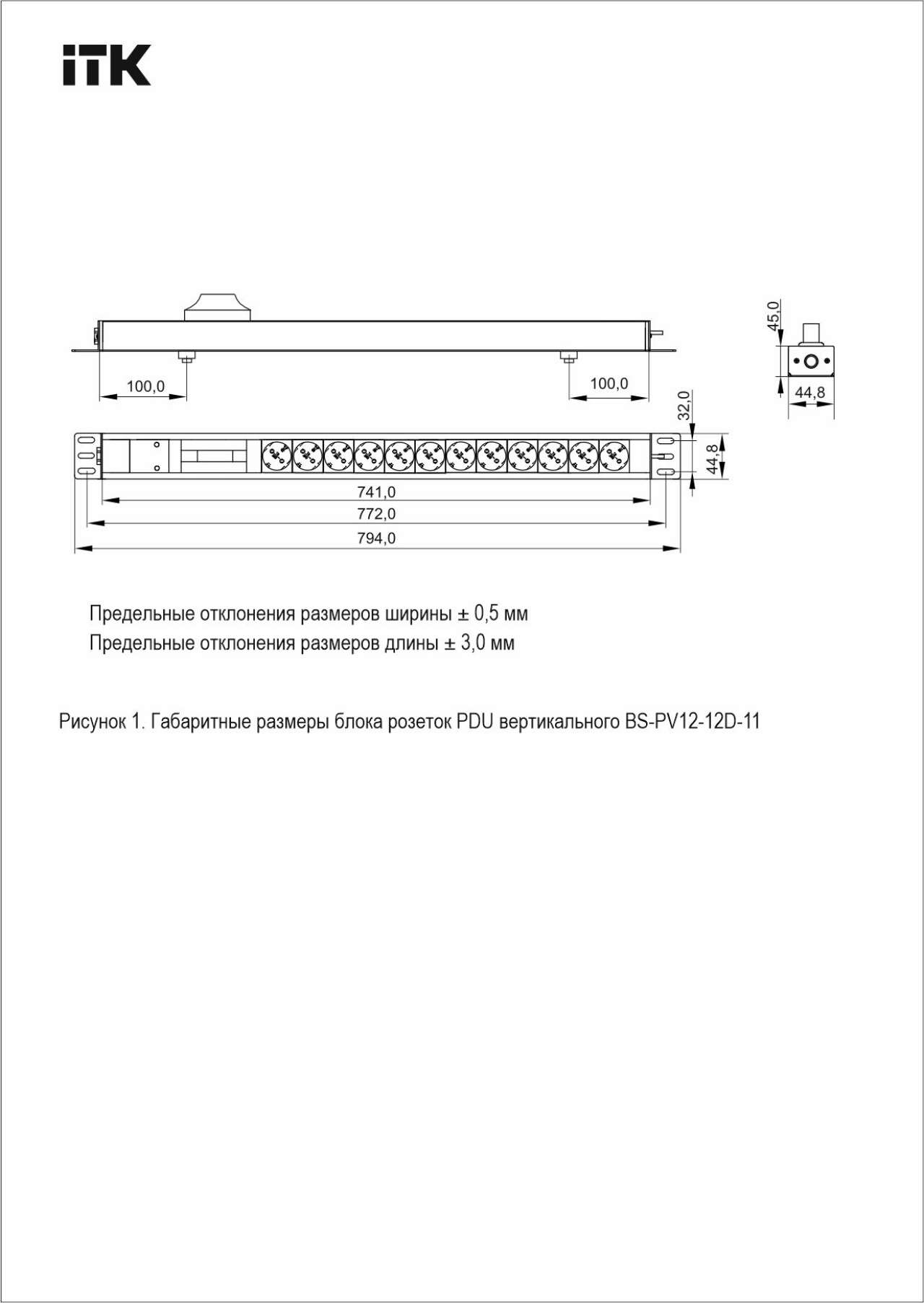ITK BASE PDU вертикальный PV0111 18U 1 фаза 16А 12 розеток SCHUKO (немецкий стандарт) кабель 2,6м вилка SCHUKO (немецкий стандарт)