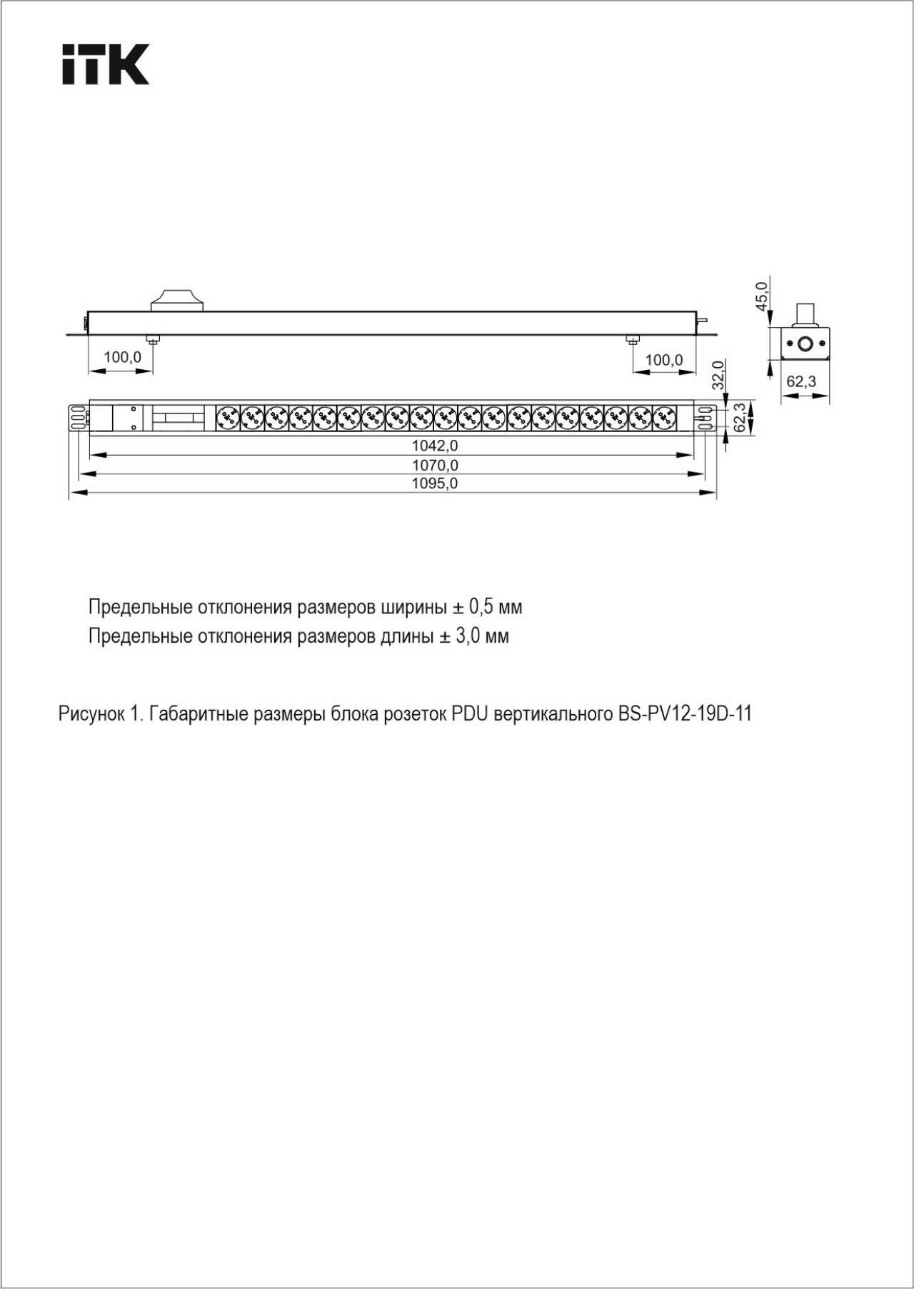 ITK BASE PDU вертикальный PV0111 25U 1 фаза 16А 19 розеток SCHUKO (немецкий стандарт) кабель 2,6м вилка SCHUKO (немецкий стандарт)