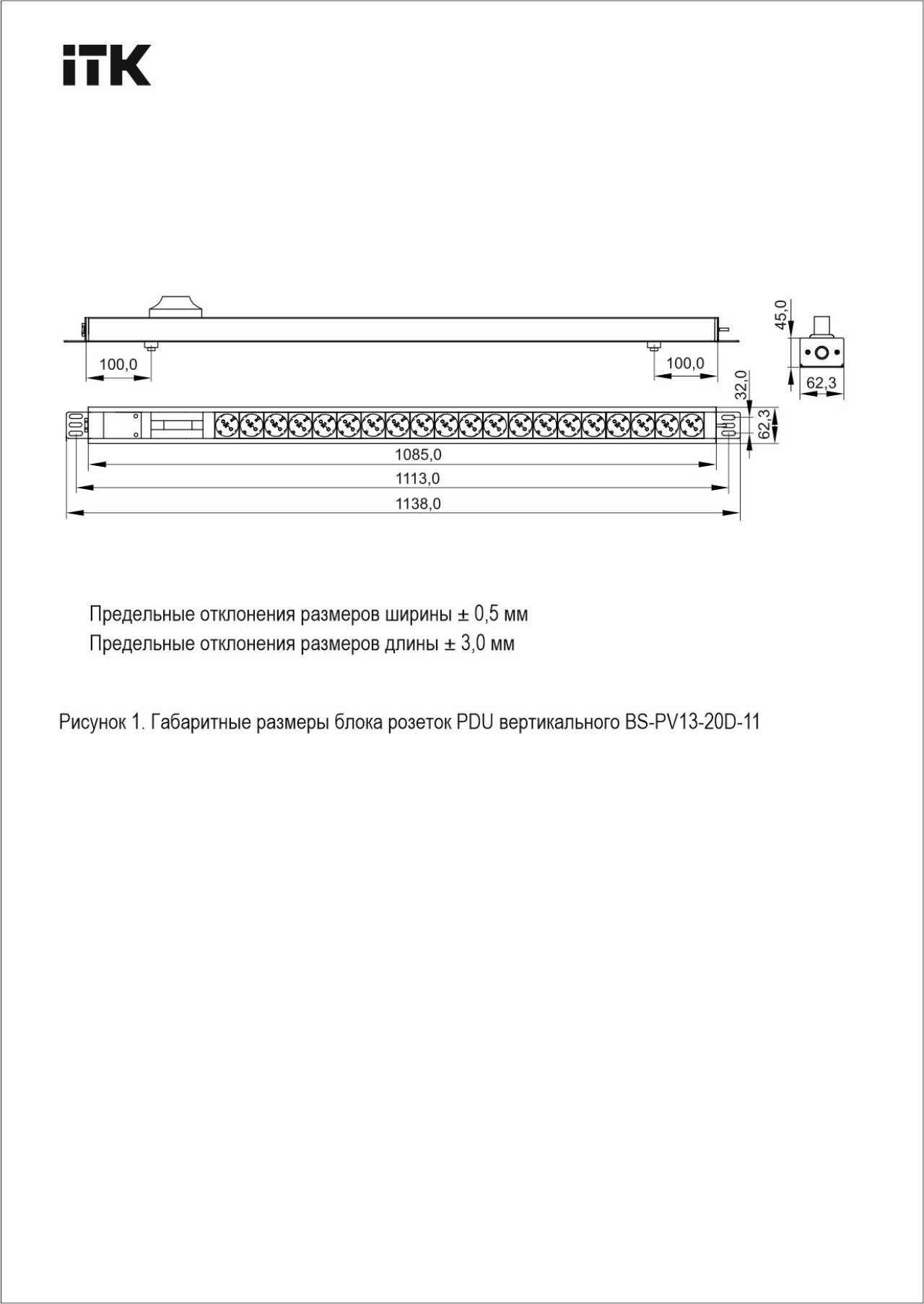 ITK BASE PDU вертикальный PV0111 26U 1 фаза 16А 20 розеток SCHUKO (немецкий стандарт) кабель 2,6м вилка SCHUKO (немецкий стандарт)