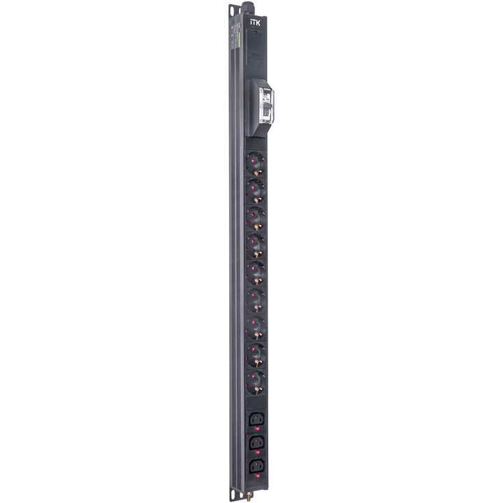 ITK BASE PDU вертикальный PV1111 18U 1 фаза 16А 9 розеток SCHUKO (немецкий стандарт) + 3 розетки C13 кабель 2,6м вилка SCHUKO (немецкий стандарт)