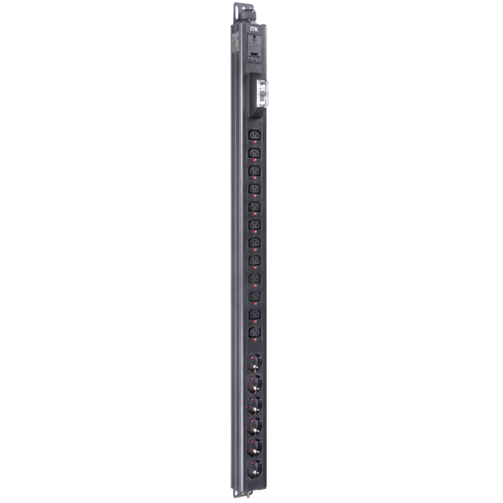 ITK BASE PDU вертикальный PV1112 23U 1 фаза 32А 6 розеток SCHUKO (немецкий стандарт) + 12 розеток C13 с клеммной колодкой и кабелем 3м вилка IEC60309 (промышленная)