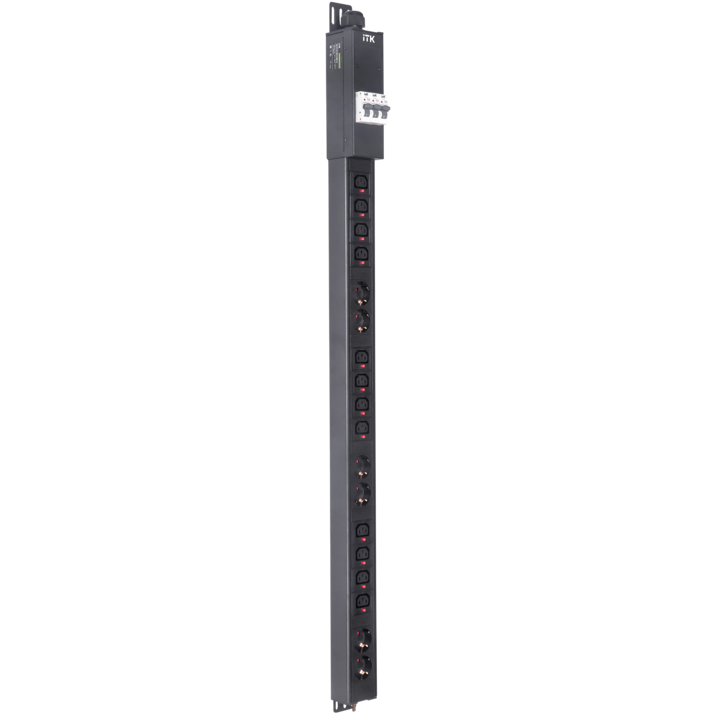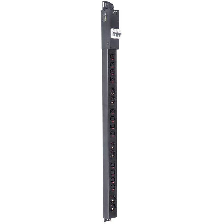 ITK BASE PDU вертикальный PV1113 25U 3 фазы 32А 6 розеток SCHUKO (немецкий стандарт) + 12 розеток C13 с клеммной колодкой и кабелем 3м вилка IEC60309 (промышленная)