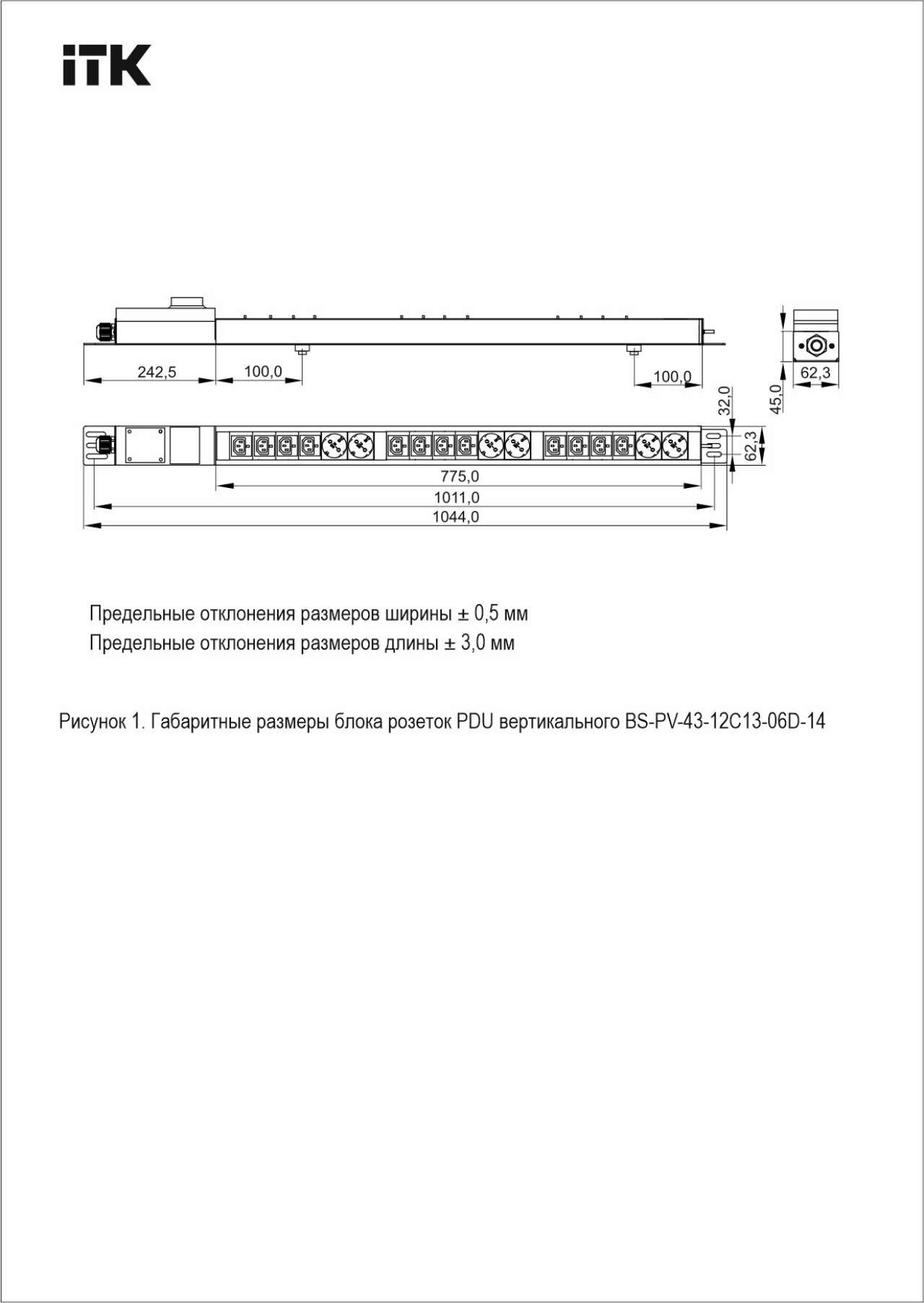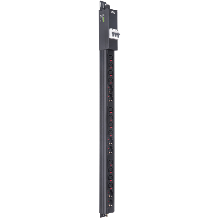 ITK BASE PDU вертикальный PV1114 24U 3 фазы 16А 6 розеток SCHUKO (немецкий стандарт) + 12 розеток C13 с клеммной колодкой и кабелем 3м вилка IEC60309 (промышленная)