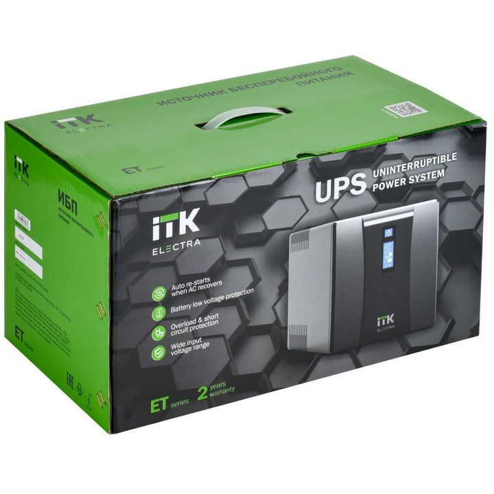 ITK ELECTRA ET ИБП однофазный линейно-интерактивный 1,5кВА/900Вт 4хSchuko LCD дисплей АКБ 2х9AH USB