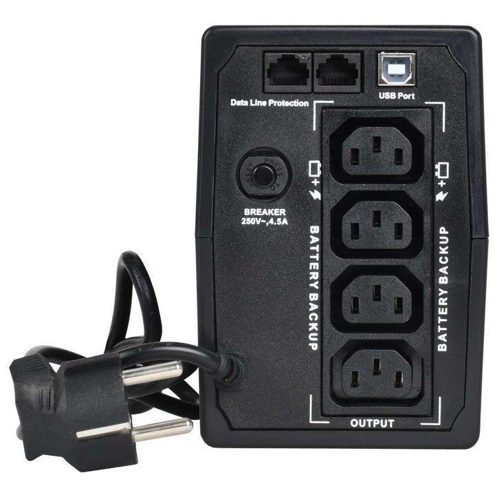- Оснащен 2 разъемами RJ-11 для защиты телефона, модема или факса от скачков напряжения.