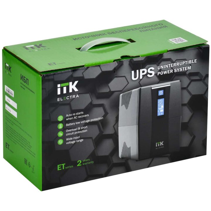 ITK ELECTRA ET ИБП однофазный линейно-интерактивный 600ВА/360Вт 4хС13 LCD дисплей АКБ 1х7AH USB