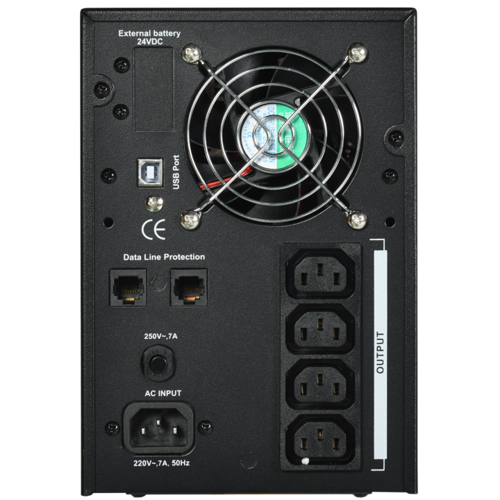 - Оснащен 2 разъемами RJ-11 для защиты телефона, модема или факса от скачков напряжения.