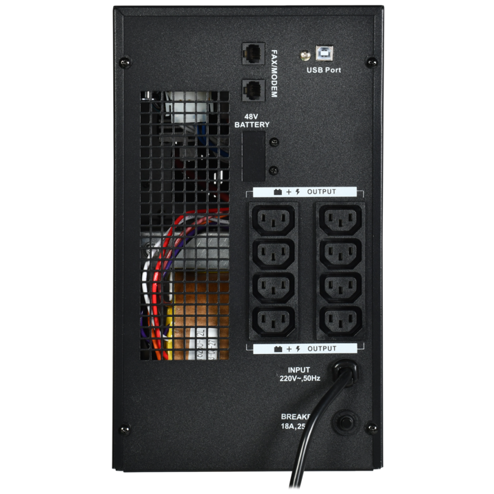 - Оснащен 2 разъемами RJ-11 для защиты телефона, модема или факса от скачков напряжения.