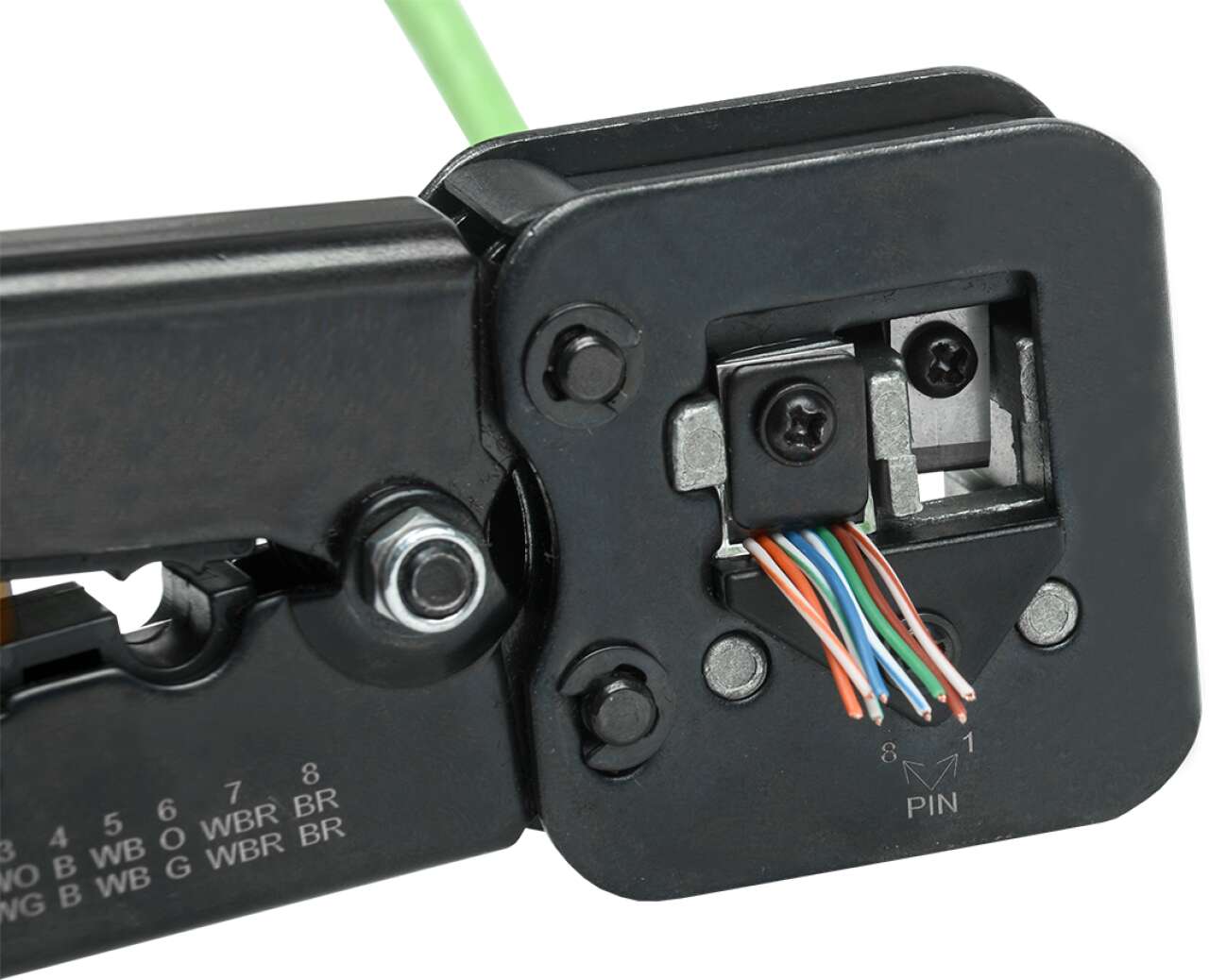 Инструмент улучшает производительность за счет специального обжимного разъема, который позволяет одновременно обрезать и обжимать кабель.