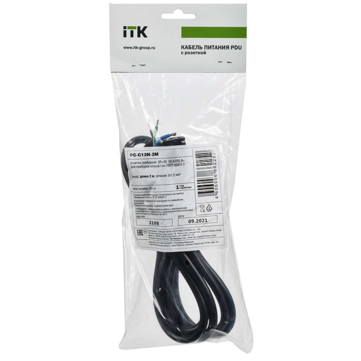 ITK Кабель электропитания PDU 3х1,5 2М с разъёмом С13-б/р