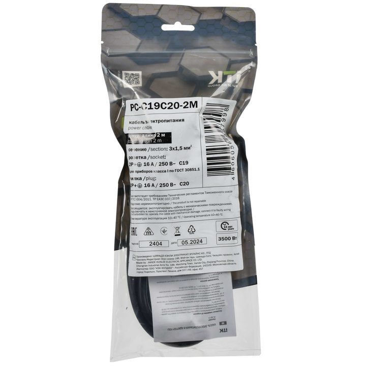 ITK Кабель электропитания PDU 3х1,5мм2 2м с разъёмами С19-C20
