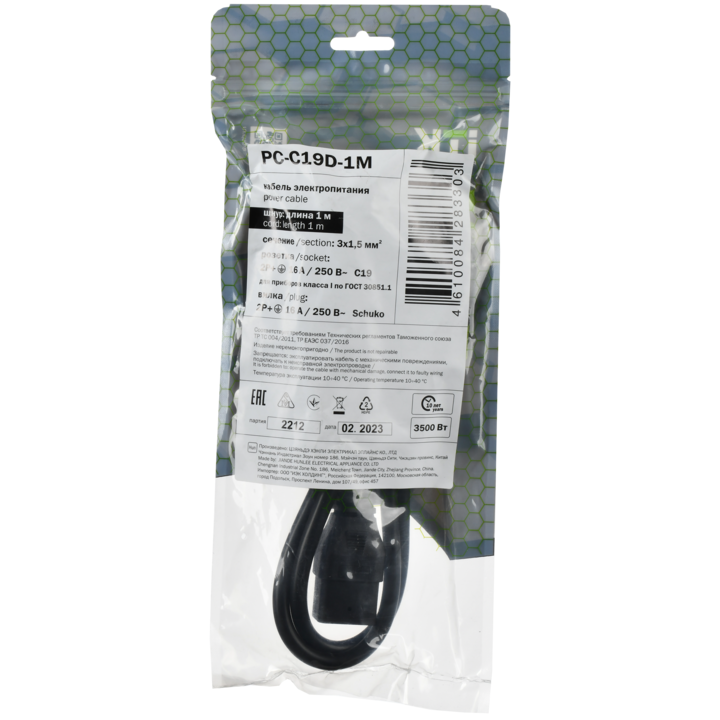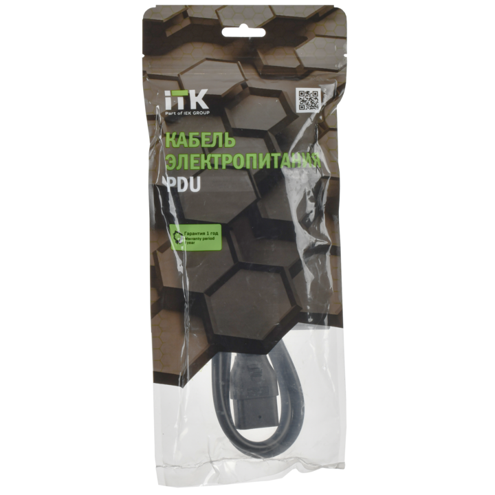 ITK Кабель электропитания PDU сечением 3х1,5 1М с разъёмами C19 и Schuko