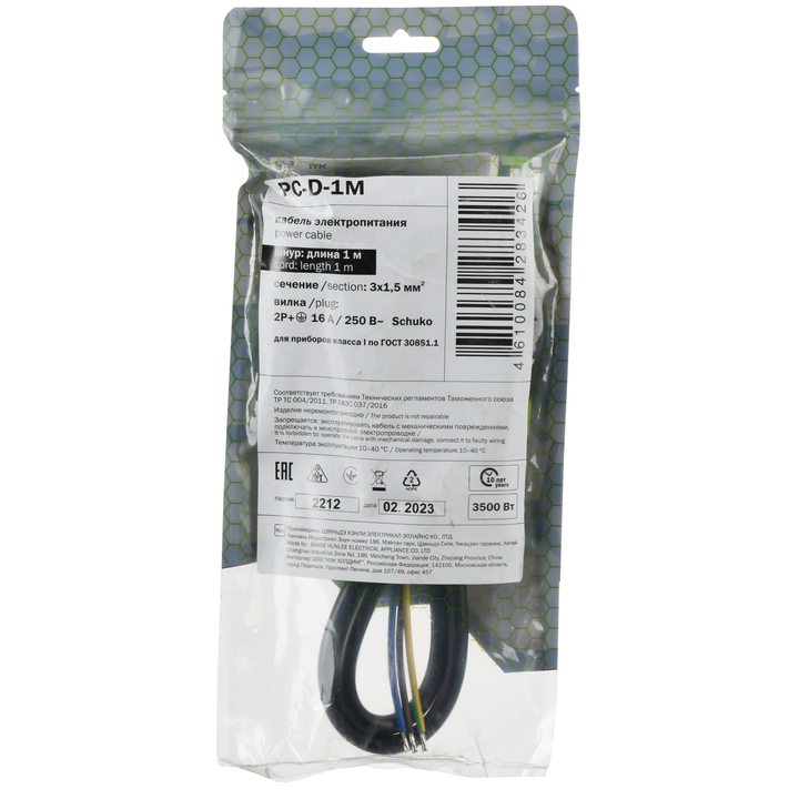 ITK Кабель электропитания PDU сечением 3х1,5 1М с разъёмом Schuko и без разъема