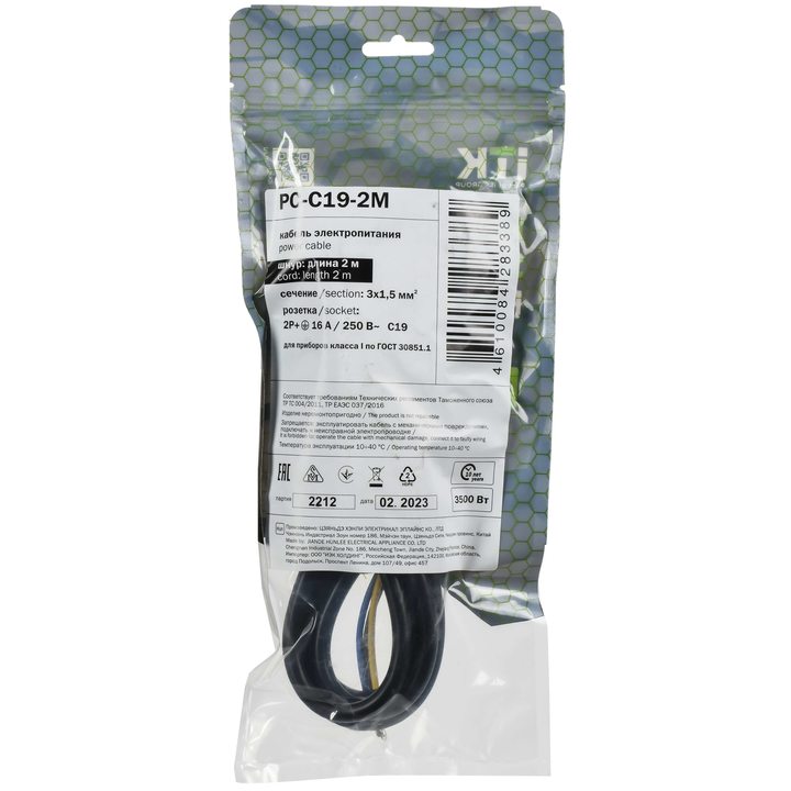 ITK Кабель электропитания PDU сечением 3х1,5 2М с разъёмом C19 и без разъема