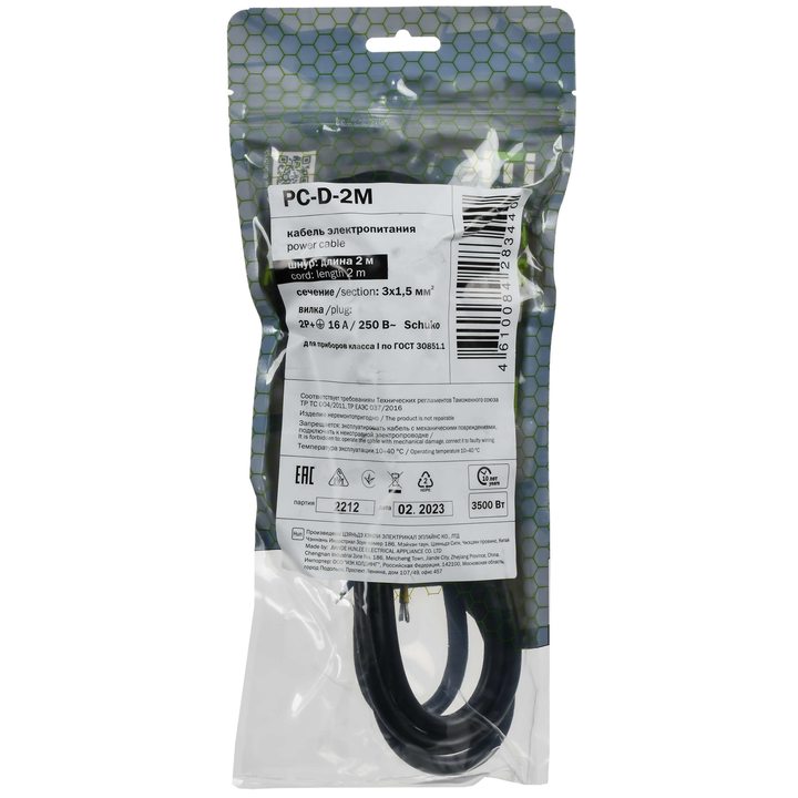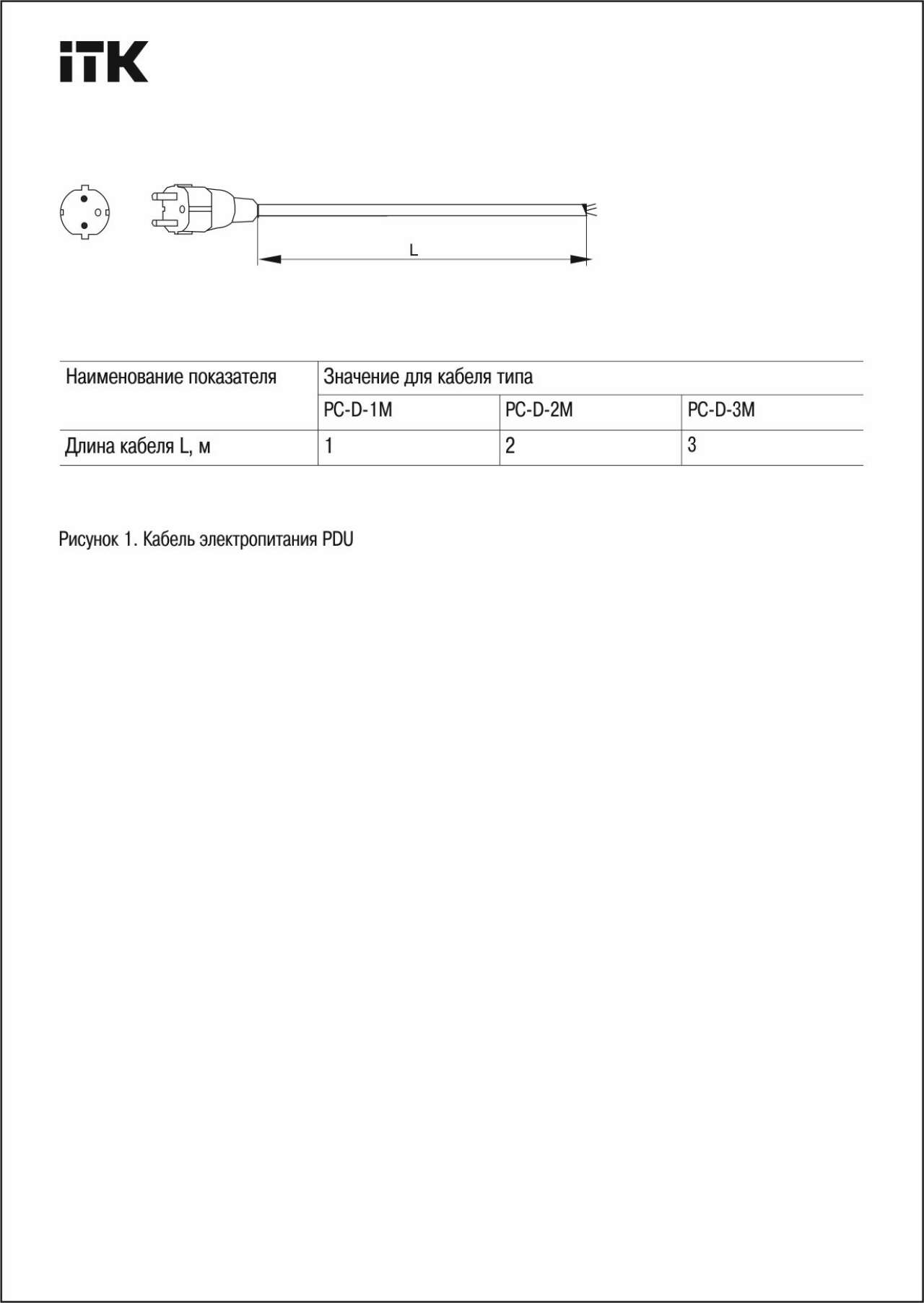 ITK Кабель электропитания PDU сечением 3х1,5 2М с разъёмом Schuko и без разъема