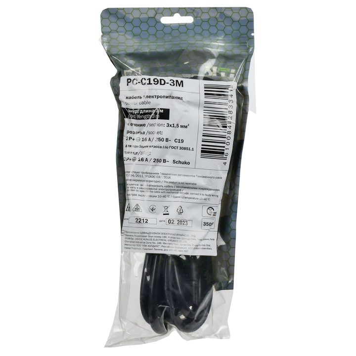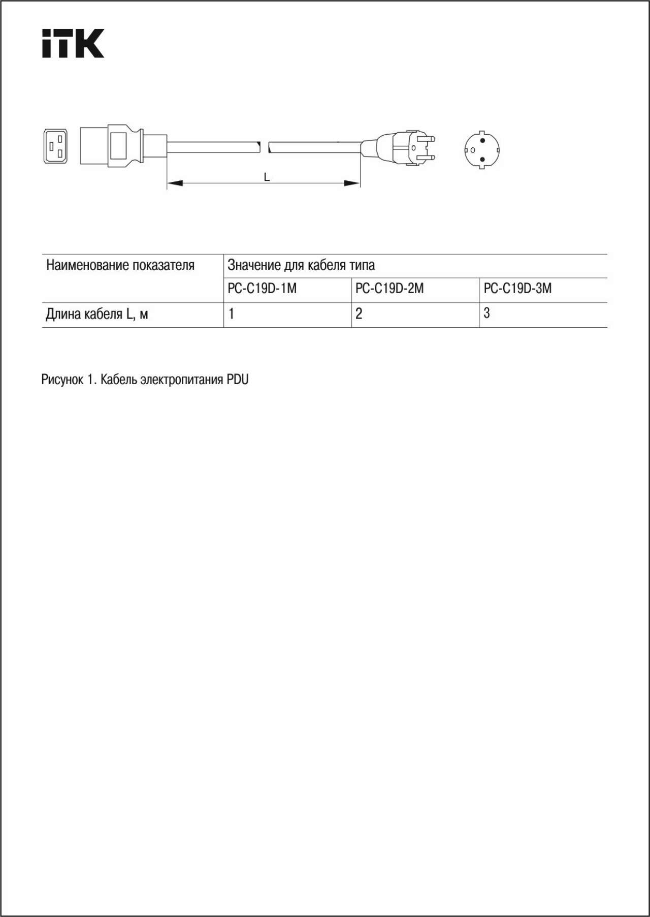 ITK Кабель электропитания PDU сечением 3х1,5 3М с разъёмами C19 и Schuko