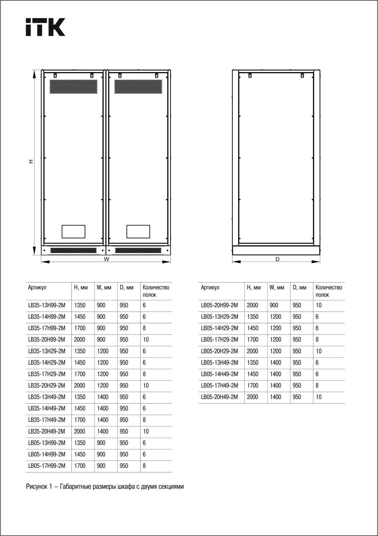 ITK LINEA B Шкаф (пустой) 2000х1400х950мм двустворчатая металлическая дверь серый