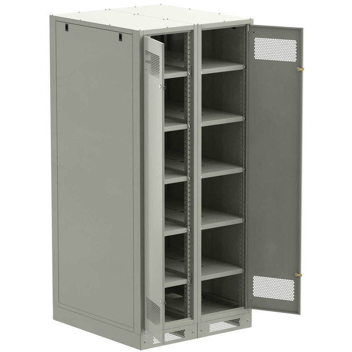 - Полки с вырезом для удобства соединения аккумуляторных батарей