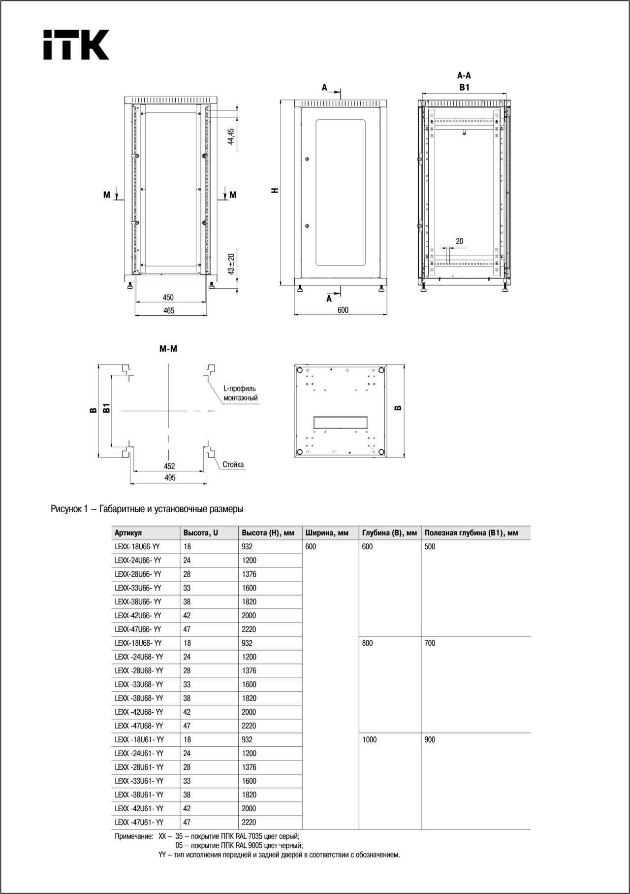 - 19" монтажные профили регулируются по глубине и имеют цифровую маркировку высоты в юнитах.